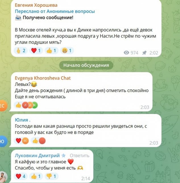 Наивные подписчицы Филипповой до сих пор не понимают, что происходит, и думают, что Дорожкина дружила с Настей, хотя у них из-за Луковкина были ссоры. Для видимости Филиппову могли пригласить на день рождения, но пока его отмечали скромно, на квартире Димы.